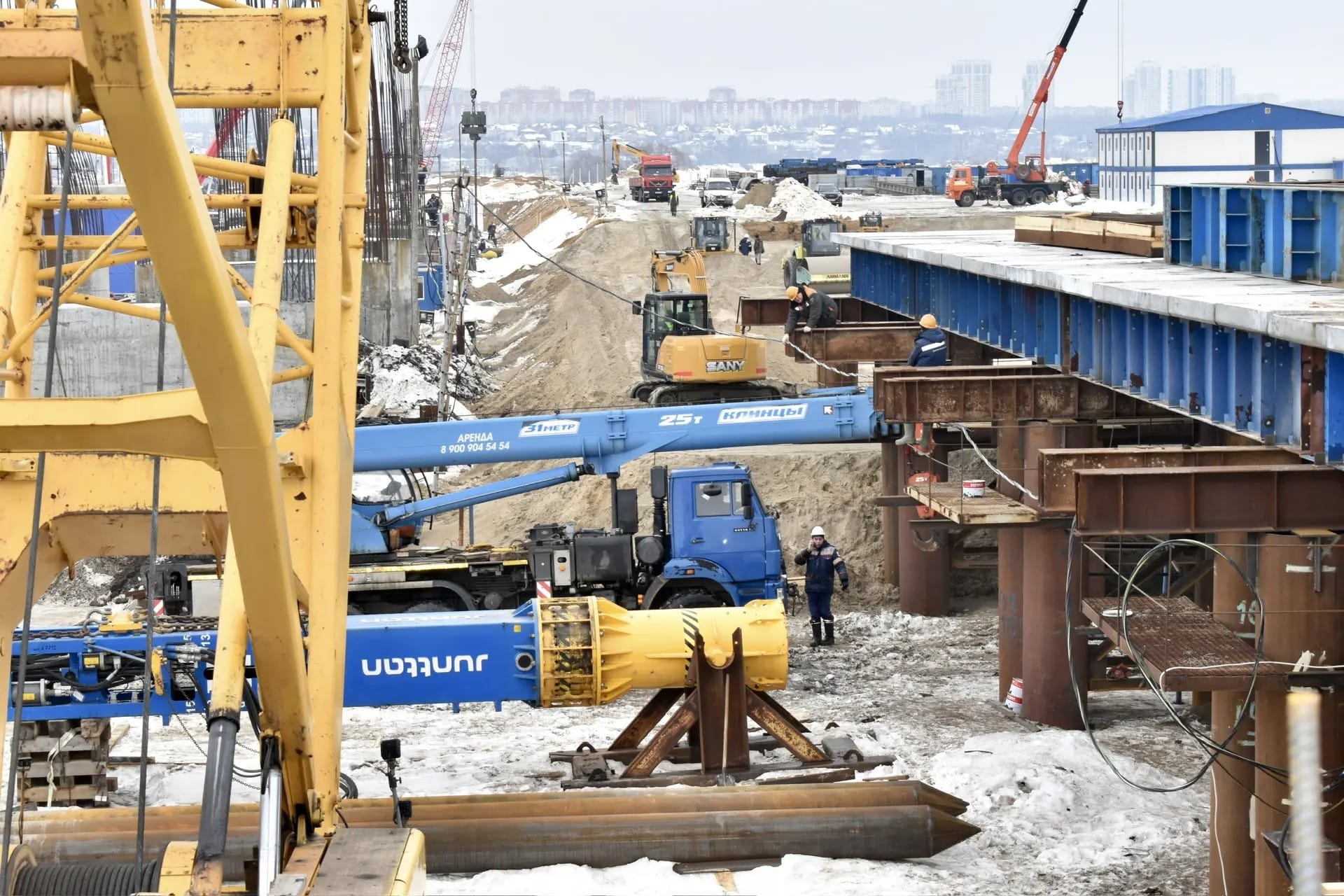 В Рязанской области благодаря реализации национального проекта «Инфраструктура для жизни» продолжается строительство моста через Оку. Работы ведутся круглосуточно по обе стороны реки. На площадке задействованы 262 человека и 108 единиц техники. Строительная готовность объекта ― 19,3 %.